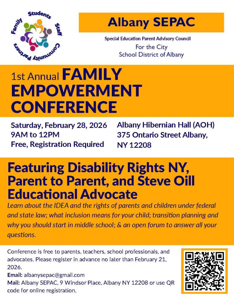 Albany SEPAC is a group of families, educators, and community members who work together with the District’s Special Education Department in order to share information and support, and engage in problem solving. We strive to facilitate collaboration between all special education partners.